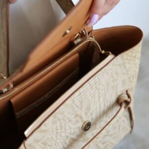 5جیب تفکیک شده ,2 جیب در کناره ها , 2 جیب زیپدار بزرگ,یک جیب بیرونی, با بنند آویز کلید